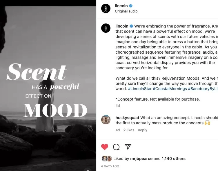 While it’s usually centered on exhibiting paintings and sculpture, this time Art Basel offered a peek at some futuristic automotive marketing, too. After inviting people to our event in Miami, we broke the news: Lincoln was the sanctuary-obsessed brand behind the fragrance. Serena posted an insta to fans eager to learn more about Coastal Mornings.
