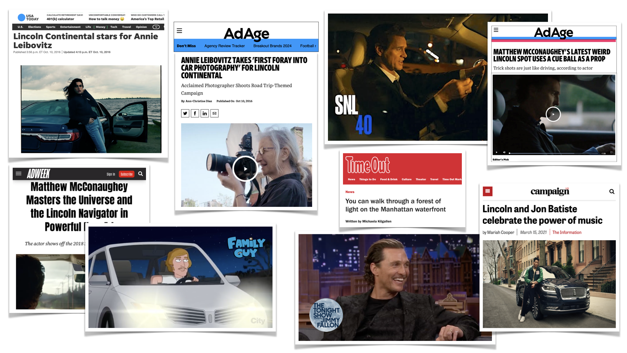 During this time, I helped lead the creation of numerous highly visible and award-winning integrated campaigns across social, digital, print, experiential and broadcast platforms, culminating in record growth. Most notably, the McConaughey work. While it started before my arrival, I’m beyond proud to have authored his last six spots, helping cement his (and Lincoln’s) place in pop culture and parody.